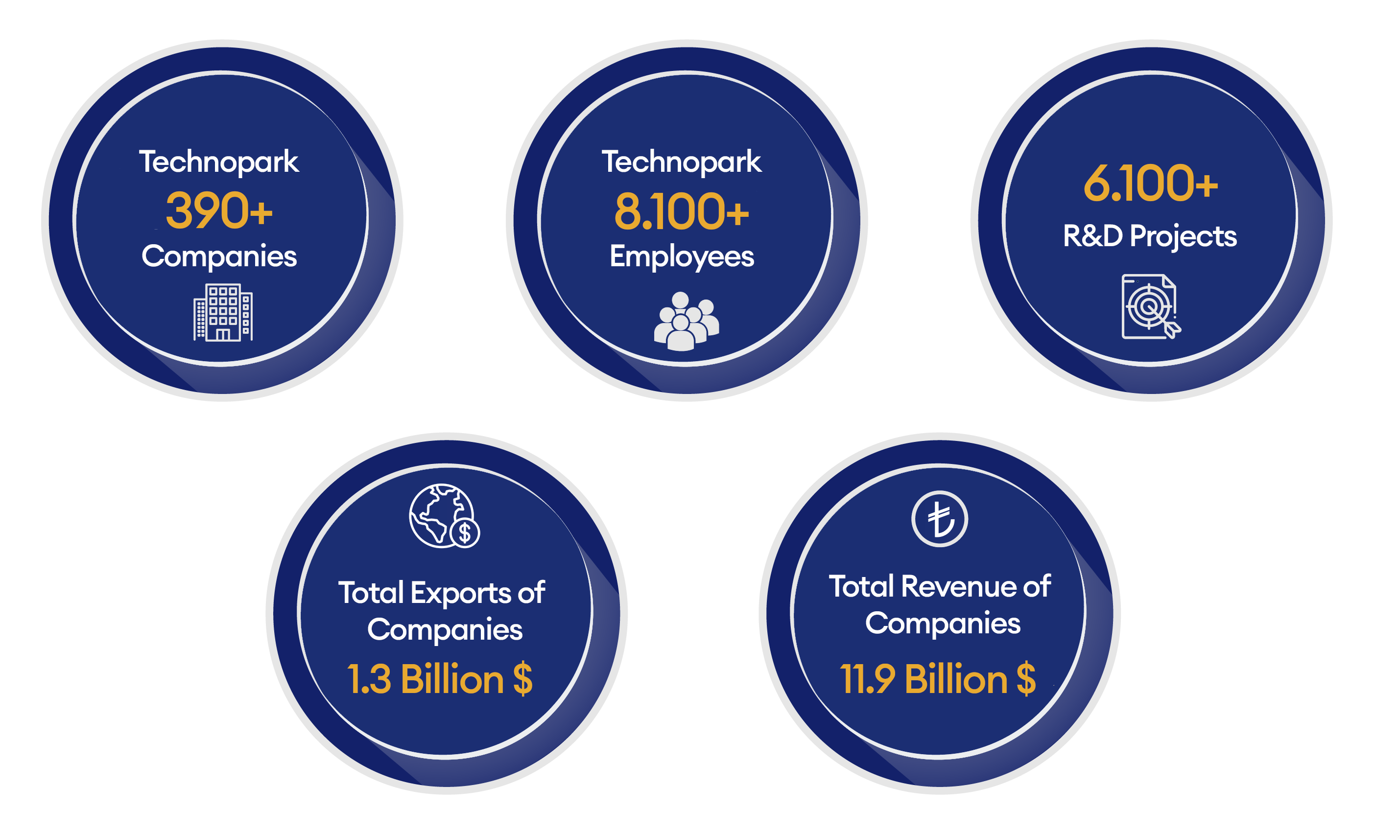 Active in ITU Ayazağa Campus, ITU ARI Teknokent has been founded on an area of 1,655,000 m2 with 10 buildings with more than 390 technology companies built. It employs more than 8,100 R&D personnel and has completed more than 6,100+ successful R&D projects, with a total of 11.9+ billion dollars R&D income with its companies; It has realized a total export of 1.3+ billion dollars.