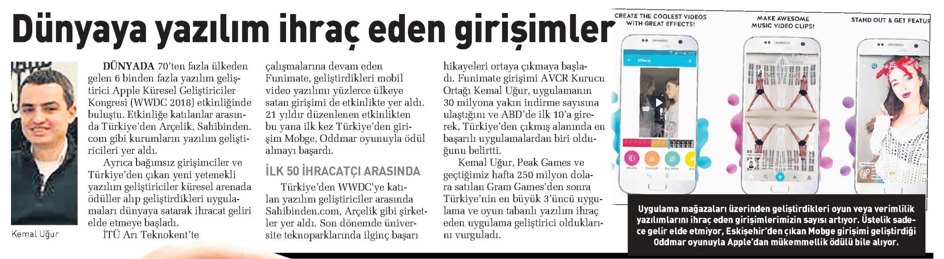 Dünyada 70'den fazla ülkeden gelen 6 binden fazla yazılım geliştirici Apple Küresel Geliştiriciler Kongresi etkinliğinde buluştu. İTÜ ARI Teknokent'te çalışmalarına devam eden Funimate, geliştirdikleri mobil video yazılımı ile etkinlikte yer aldı.