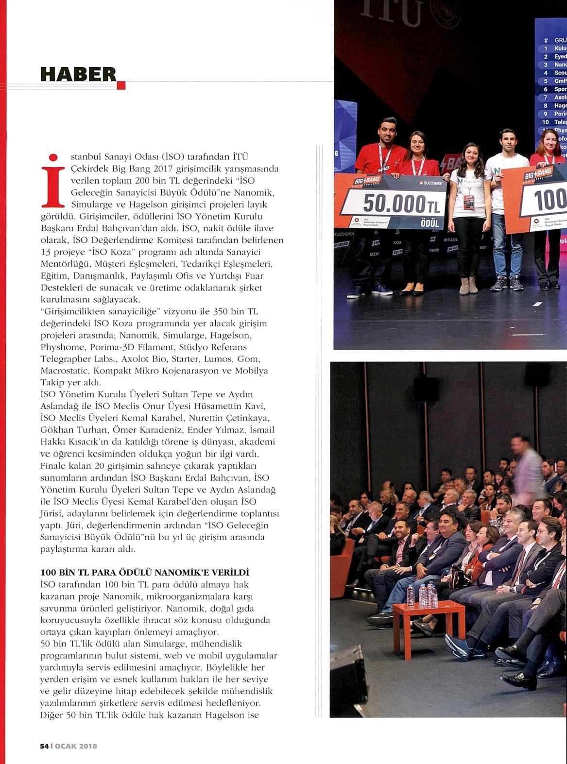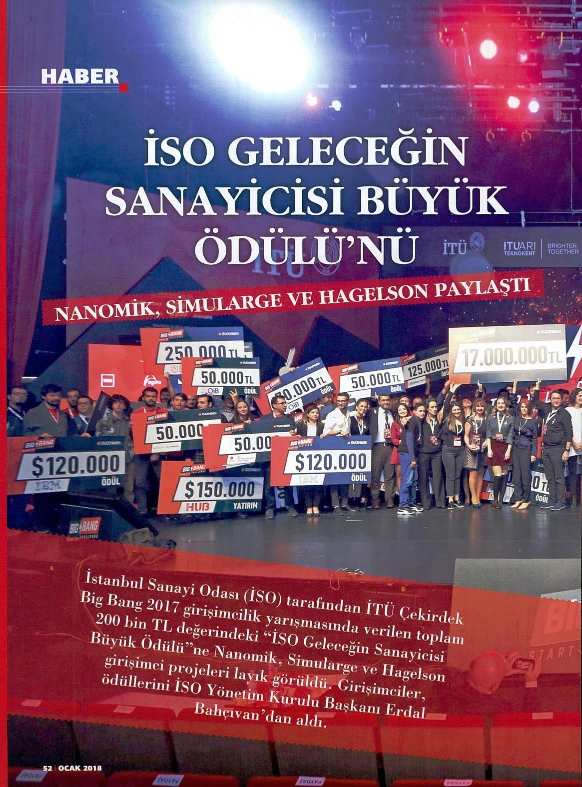 İSO GELECEĞİN SANAYİCİSİ BÜYÜK ÖDÜLÜ'NÜ NANOMİK, SIMULARGE VE HAGELSON PAYLAŞTI