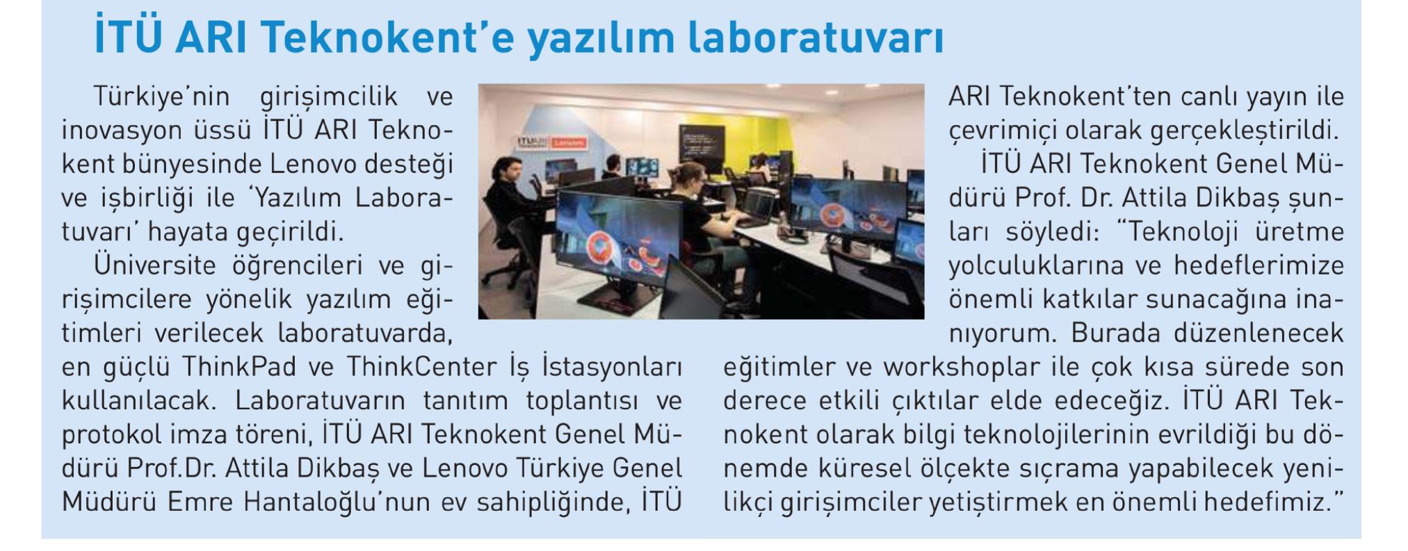 Türkiye'nin girişimcilik ve inovasyon üssü İTÜ ARI Teknokent bünyesinde Lenovo desteği ve işbirliği ile "Yazılım Laboratuvarı" hayata geçirildi.