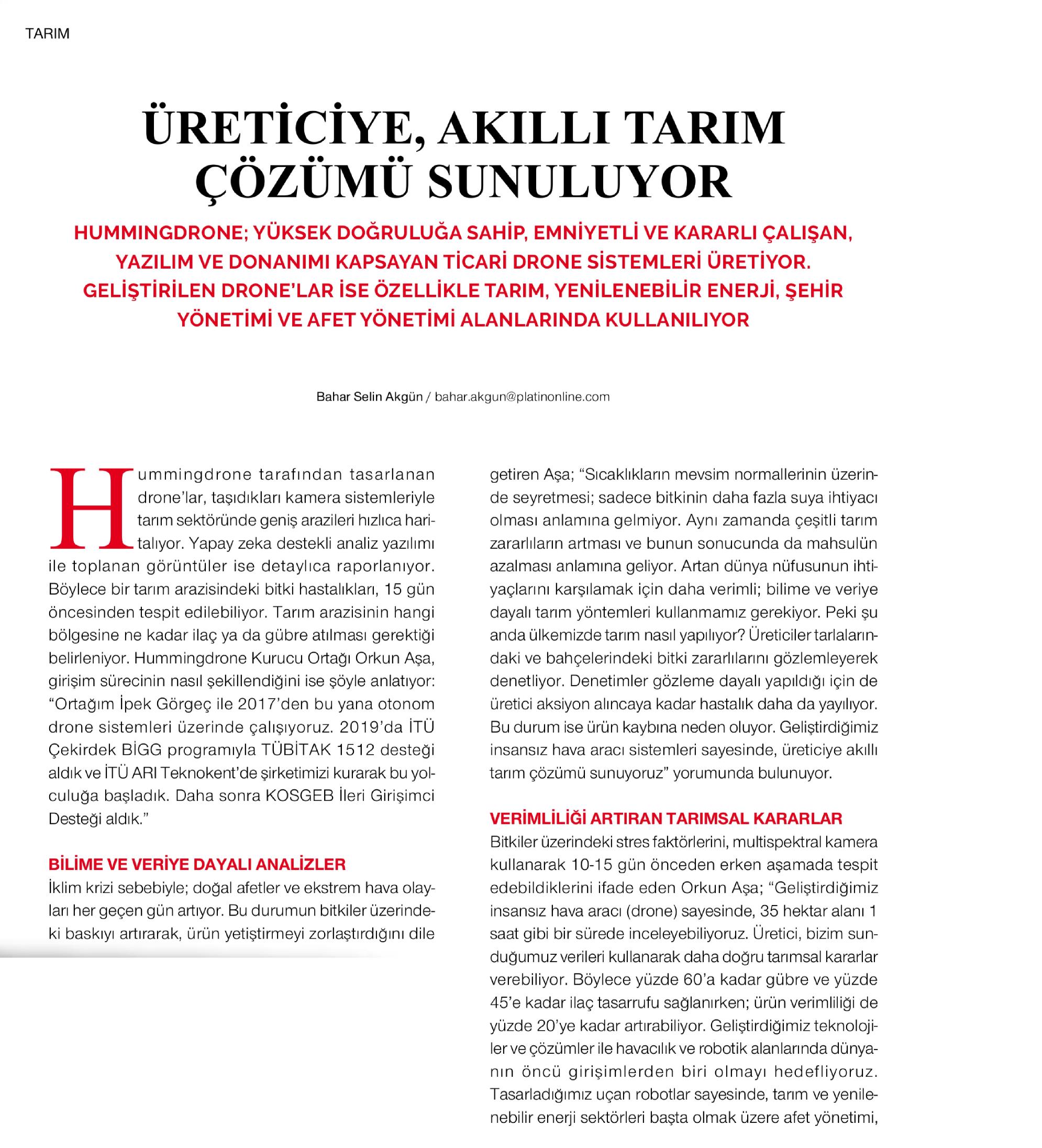 İTÜ ARI Teknokent'in kuluçka merkezi İTÜ Çekirdek girişimlerinden Hummingdrone, üreticiye akıllı tarım çözümleri üretiyor.