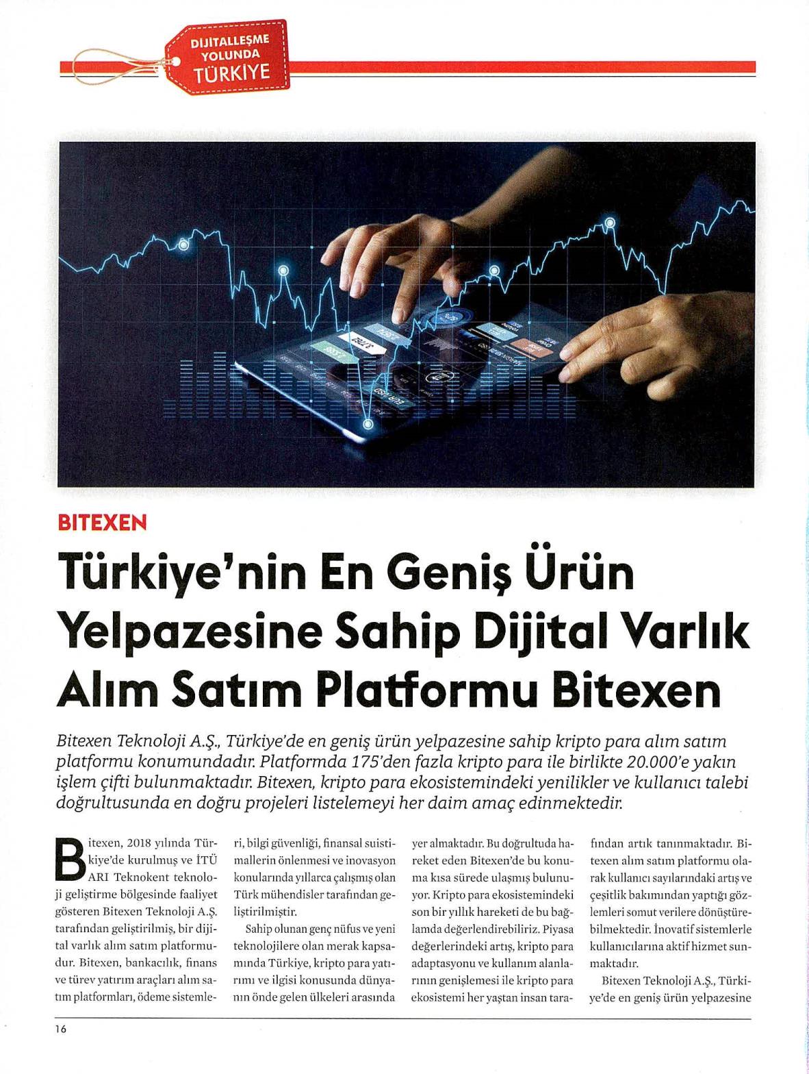 İTÜ ARI Teknokent firmalarımızdan Bitexen Teknoloji A.Ş. tarafından geliştirilmiş bir dijital varlık alım satım platformu olan Bitexen; bankacılık, finans ve türev yatırım araçları alım satım platformları, ödeme sistemleri, bilgi güvenliği, finansal suistimallerin önlenmesi ve inovasyon konularında yıllarca çalışmış olan Türk mühendisler tarafından tasarlanıyor. Türkiye'de en geniş ürün yelpazesinebitexen sahip kripto para alım satım platformu konumunda olan platformda 175'den fazla kripto para ile birlikte 20.000'e yakın işlem çifti bulunuyor. Bitexen, kripto para ekosistemindeki yenilikler ve kullanıcı talebi doğrultusunda en doğru projeleri listelemeyi her daim amaç ediniyor. Tüm hesap gerekliliklerini tamamlamış, diğer bir ifade ile işlem yapmaya hazır durumda olan Bitexen kullanıcı sayısı yaklaşık 2 milyondur. Kripto para ekosistemi okuryazarlığını geliştirmek için Bitexen kullanıcılarına web sitesindeki "Araştırma" başlığı altında önemli makaleler, raporlar ve projeler de sunuluyor.
